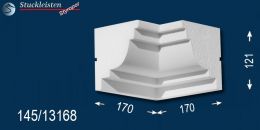 Weitere Ergänzungselemente sind die unterschiedlichen Eckelemente. Mit dem äußeren Eckelement lässt sich die Fassadenstuck Zierleiste Niebüll 145 als Umlaufgesims verwenden. Diese 90-Grad-Ecken brauchen Sie nur an den Hausecken anzukleben, dann die entsprechend langen Zierleisten dazwischen zu kleben und schon können Sie Ihren Erfolg bewundern. Wenn Sie die Gesimsprofile um einen Erker, Balkon oder Hausanbau herumführen möchten, brauchen Sie auch das innere Eckelement, das das Stuckmuster von der Hauswand zum Anbau hinführt.