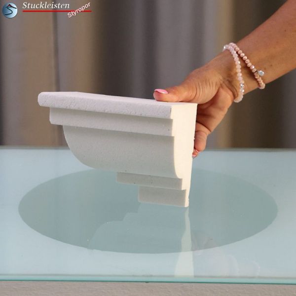 Das Fassadenprofil Niebüll 145 ist ein klassisches Stuckgesims aus Styropor. Das Gesimsprofil verfügt über eine stoßfeste und witterungsbeständige Beschichtung, eignet sich dadurch zur Fassadengestaltung im Außenbereich und kann mit Farben auf Wasserbasis gestrichen werden. Die Ergänzungselemente des Dachgesimsprofils sind in Größe und Stuckmuster auf das stoßfest beschichtete Fassadenprofil abgestimmt. Dank der schlichten Profilierung kann dieses Dachgesims hervorragend mit anderen Fassadenelementen kombiniert werden.