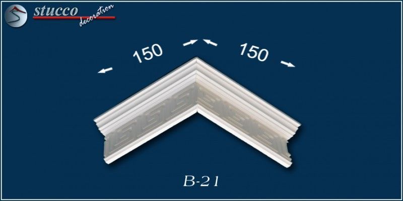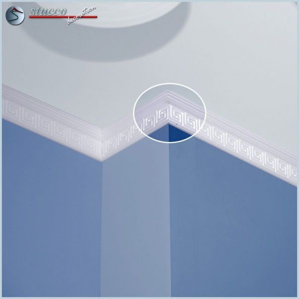 Das altgriechische und noch immer beliebte Mäander-Motiv vereint Tradition und Moderne. Die geraden Linien verwandeln diese modernen Stuckprofile aus Styropor in ein zeitlos schönes Element der Raumgestaltung, das bei der Deckengestaltung Akzente setzt. Mit dem Stuckprofil B21 können Sie den Übergang von der Decke zur Wand schlicht und wirkungsvoll in einem gestalten. Das Mäander-Motiv wird gerade an der Wand angebracht, erst darüber neigt sich die Stuckleiste im Winkel von 45 Grad.