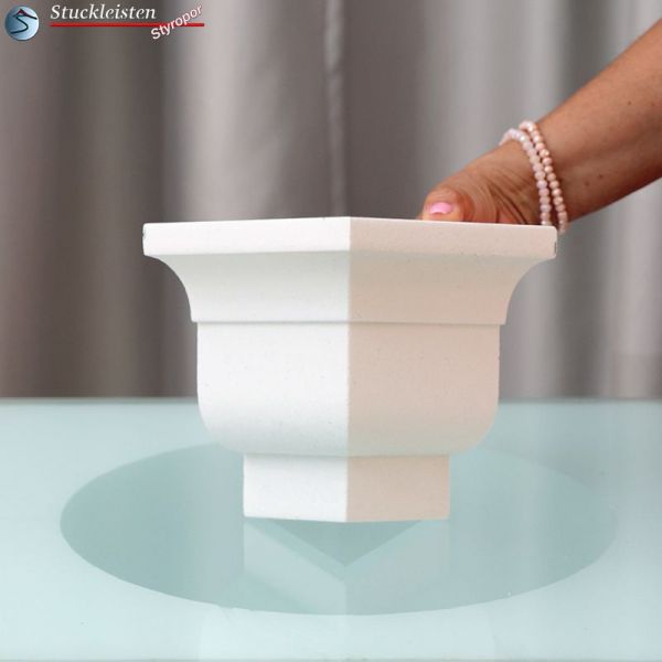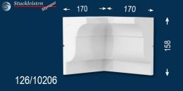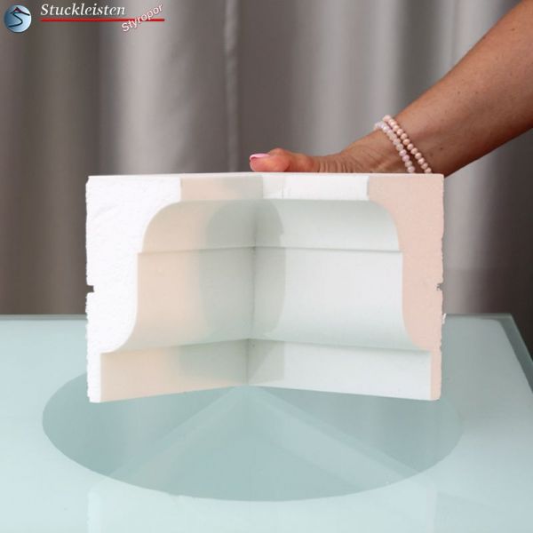 Das wetterfest beschichtete Traufgesims Dachgesims Bonn 126 ist ein schlicht gehaltenes Fassadenprofil aus Styropor (EPS), welches sich dank der stoßfesten Beschichtung für die Verzierung des Übergangs von der Hauswand zum Dach eignet. Das Gesimsprofil Bonn 126 ist 158 mm hoch und 88 mm stark. Mit Hilfe der Gesimsleiste Bonn 126 und den dazu passenden vorgefertigten Ergänzungsementen können stilvolle Traufgesimse, Dachgesimse und Umlaufgesimse einfach realisiert werden. Die Fassadenprofile können nach Abschluss der Stuckarbeiten mit einer umweltfreundlichen Fassadenfarbe auf Wasserbasis (sogenannter Dispersionsfarbe) gestrichen werden. Das beschichtete Traufgesims Bonn 126 ist der kleinere Bruder zu dem beschichteten Dachgesimsprofil Köln 125.