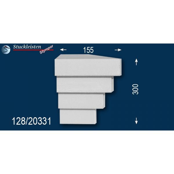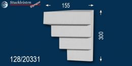 Das stoßfest beschichtete Gurtgesims Stuttgart 128 ist ein schlicht gehaltenes Fassadenprofil aus Styropor (EPS), welches sich dank der stoßfesten Beschichtung für die Verzierung der Hausfassade eignet. Das Gurtgesims Stuttgart 128 ist 300 mm hoch und 140 mm stark. Mit Hilfe der Gesimsleiste Stuttgart 128 sowie den dazu passenden vorgefertigten Schließelementen und Eckelementen können stilvolle Geschossgesimse, Gurtgesimse und Umlaufgesimse einfach realisiert werden. Das beschichtete Gurtgesims Stuttgart 128 ist der größere Bruder zum beschichteten Gesimsprofil Mannheim 129 und der kleinere Bruder zum beschichteten Fassadenprofil Leipzig 132. Die Fassadenprofile können nach Abschluss der Stuckarbeiten mit einer umweltfreundlichen Fassadenfarbe auf Wasserbasis (sogenannter Dispersionsfarbe) gestrichen werden.