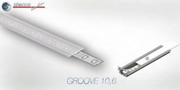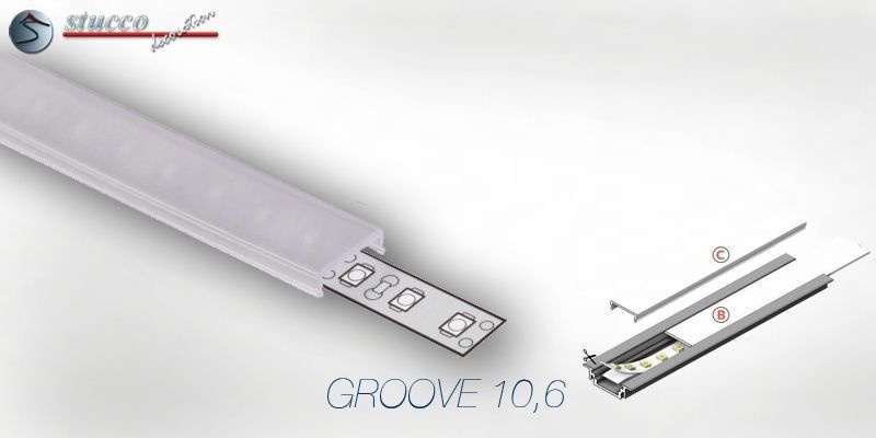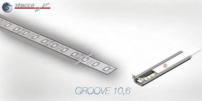 Das Alu LED Profil GROOVE eignet sich für den Einbau von LED Strips für indirekte Beleuchtung. Die Aluminiumschiene können Sie sowohl in Wände als auch in Möbelstücke einbauen, um zum Beispiel genügend Licht im Kleiderschrank oder in Nischen zu haben. Auch zum Abtrennen von verschiedenen Wohn- oder Arbeitsbereichen ist diese Leiste geeignet. Alle LED Strips und RGB Stripes aus unserem Sortiment sind für den Einbau in diese Leiste geeignet.