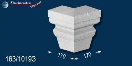 Weitere Ergänzungselemente sind die unterschiedlichen Eckelemente. Mit dem äußeren Eckelement lässt sich die Fassadenstuck Zierleiste Ostbayern 163 als Umlaufgesims verwenden. Diese 90-Grad-Ecken brauchen Sie nur an den Hausecken anzukleben, dann die entsprechend langen Zierleisten dazwischen zu kleben und schon können Sie Ihren Erfolg bewundern. Wenn Ihr Haus einen Erker, einen Balkon oder einen Anbau hat, den Sie ebenfalls mit der Außenstuckleiste Ostbayern 163 verzieren möchten, dann brauchen Sie auch innere Eckelemente, die das Stuckmuster von der Hauswand zum Anbau weiterleiten.