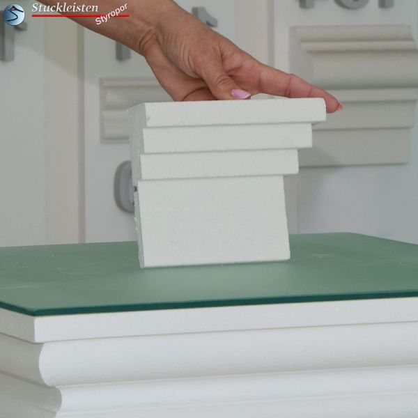 Mit dem äußeren Eckelement lässt sich die Fassadenstuck Zierleiste Görlitz 161 als Umlaufgesims verwenden. Diese 90-Grad-Ecken brauchen Sie nur an den Hausecken anzukleben, dann die entsprechend langen Zierleisten dazwischen zu kleben und schon können Sie Ihren Erfolg bewundern.