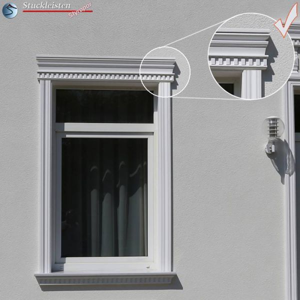 Faschenverzierung: Beschichtete Stuckprofile Fassade Hannover 123 zur Gestaltung der Fensterfaschen im schlichten Stil.