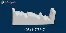 Zierleiste für Fenstersturz: Stoßfestes Gesimsprofil aus Styropor Dortmund 108+117-7217 zu dem Sie auf der Produktseite auch das passende rechte und linke Schließelement finden.