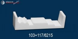 Zierleiste für Fenstersturz: Stoßfestes Gesimsprofil aus Styropor Hamburg 103+117/6215 zu dem Sie auf der Produktseite auch das passende rechte und linke Schließelement finden.
