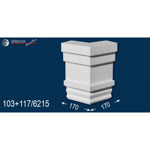 Das Gesimsprofil Hamburg 103+117/6215 ist ein modern gestaltetes Fassadenprofil aus Styropor (EPS), welches sich dank der stoßfesten Beschichtung für die Fensterverzierung und für Gurtgesimse an der Außenfassade eignet. Das Außenstuck Profil ist 213 mm hoch; oben 52 mm und unten 23 mm stark. Mithilfe des Gesimsprofils Hamburg 103+117/6215 und den dazu passenden, vorgefertigten Schließelementen können einfache und stilvolle Fensterumrandungen realisiert werden. Unter Verwendung der einbaufertigen Eckelemente lässt sich dieses Fassadenprofil auch zeitsparend als Umlaufgesims genutzen. Nach Abschluss der Stuckarbeiten können die Fassadenprofile mit einer umweltfreundlichen Fassadenfarbe auf Wasserbasis (sogenannter Dispersionsfarbe) gestrichen werden.