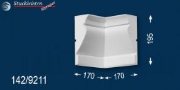 Weitere Ergänzungselemente sind die unterschiedlichen Eckelemente. Mit dem äußeren Eckelement lässt sich die Fassadenstuck Gesimsleiste Kiel 142 als Umlaufgesims verwenden. Diese 90-Grad-Ecken brauchen Sie nur an den Hausecken anzukleben, dann die entsprechend langen Zierleisten dazwischen zu kleben und schon können Sie Ihren Erfolg bewundern. Wenn Sie die Gesimsprofile um einen Erker, Balkon oder Hausanbau herumführen möchten, brauchen Sie auch das innere Eckelement, das das Stuckmuster von der Hauswand zum Anbau hinführt.
