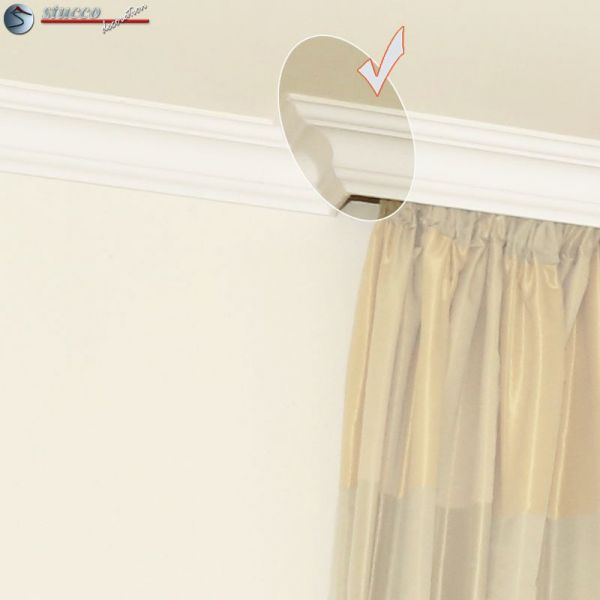 Die Vorhangleiste aus Styropor wird vor der Gardinenschiene an der Decke befestigt. Unsere Vorhangleisten sind 2 Meter lang, sie können mit einer Feinsäge auf Wunsch gekürzt werden.
