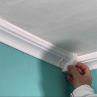 Zum Abschluß müssen die Fugen zwischen der Stuckleiste und der Decke sowie die Fugen zwischen der Wand und der Stuckleiste geschlossen werden. Dies geht einfach, indem etwas Kleber mit Hilfe der Kartuschenpresse auf die Fugen aufgebracht wird. Der Kleber lässt sich mit einem nassen Schwamm oder der angefeuchteten Fingerspitze glätten und verteilen. Wenn alle Stuckarbeiten abgeschlossen sind, brauchen Sie den Styroporstuck nur noch mit einer umweltfreundlichen Farbe auf Wasserbasis (sogenannter Dispersionsfarbe) zu streichen. Dadurch erhalten die Zierleisten und die Stöße ein einheitliches Aussehen und Ihr Stuck aus Styropor wirkt wie aus einem Guss.