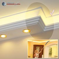 Bitte überzeugen Sie sich selbst davon, wie viele gut durchdachte und gut planbare Möglichkeiten diese Stuckleisten bieten. Es wird Ihre Fantasie bestimmt beflügeln, wenn Sie auch die Details dieser herrlichen Produkte kennen. Unsere vorgefertigten Stuckleisten-Elemente garantieren Ihnen einen einfachen und schnellen Einbau, unabhängig davon, ob Sie sich LED Spots oder LED Strips wünschen.Stellen Sie sich einmal vor, was für Möglichkeiten sich bieten: Nur einmal bauen und Sie erhalten neben einem wunderschönen, mit modernen Stuckleisten verzierten Zimmer auch eine angenehme, indirekte Beleuchtung mit LED Strips begleitet von einer direkten Beleuchtung mit LED Einbaustrahlern.