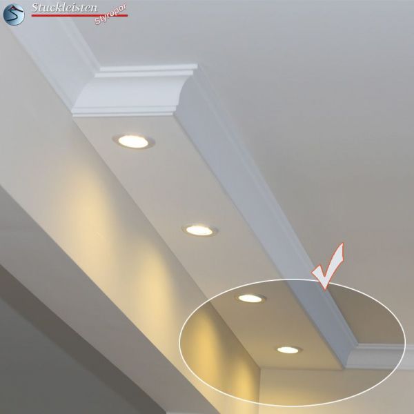 Die Antwort ist ganz einfach: mit Styropor Stuckleisten für LED Spot Beleuchtung. Oben auf dieser Seite haben wir schon unsere Stuckprofile für die direkte Beleuchtung ausführlich vorgestellt. Sehen wir uns jetzt die LED Leuchtmittel an. Lesen Sie bitte weiter und informieren Sie sich auch über die LED Einbauspotlampen, um die bestmögliche Entscheidung treffen zu können.