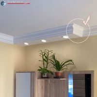 Das Stuckprofil Düren 190+2x21 ist ein U-Profil, das den Ausbau der direkten Deckenbeleuchtung mit LED Spots ermöglicht. Die Grundplatte des Profils ist 190 mm breit. Die Grundplatte verziert an beiden Längsseiten das Zierprofil Düren 21. Dieses Stuckprofil bietet eine schöne und praktische Möglichkeit für die Beleuchtung eines Esstisches oder einer Frühstückstheke in der Küche. In dem folgenden Video sehen Sie den Ausbau der Deckenbeleuchtung mit dem Stuckprofil Trier 400+2x14 und LED Spots. Der Einbau des Stuckprofils Düren 190+2x21 erfolgt genauso.