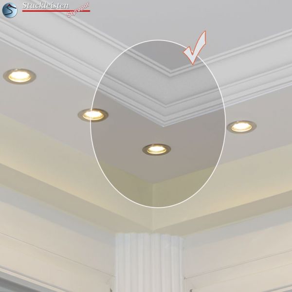 Sollten Sie nur entlang einer bestimmten Wand die LED-Spot-Beleuchtung ausbauen wollen, können Sie die L-förmigen und U-förmigen Stuckprofile mittels der passenden Ergänzungselemente ganz unkompliziert mit der klassischen Stuckleiste Düren 21 verbinden.
