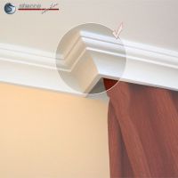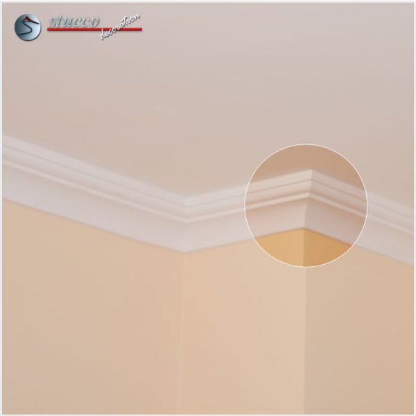 Bei der Innenraumgestaltung werden meistens alle Wände eines Raumes mit der gleichen Stuckleiste verziert. Die Stuckleiste wird in die Hohlkehle zwischen Wand und Decke geklebt, hat also zwei Klebeflächen: eine an der Wand, die andere an der Decke. Doch wie soll man verfahren, wenn man eine Gardinenstange mit der Stuckleiste verkleiden möchte? Bei den Fenstern steht meist nur die Klebefläche an der Decke zur Verfügung. Aus diesem Grund bieten wir passend zur Stuckleiste Trier 14 die Vorhangleiste Trier 14 an. Die Vorhangleiste zur Stuckleiste Trier 14 verfügt über eine breitere obere Klebefläche. So kann die Profilleiste trotz nur einer zur Verfügung stehenden Klebefläche stabil fixiert werden. Natürlich sind Innen- und Außenecken auch zur Vorhangleiste als vorgefertigte Stuckelemente erhältlich.