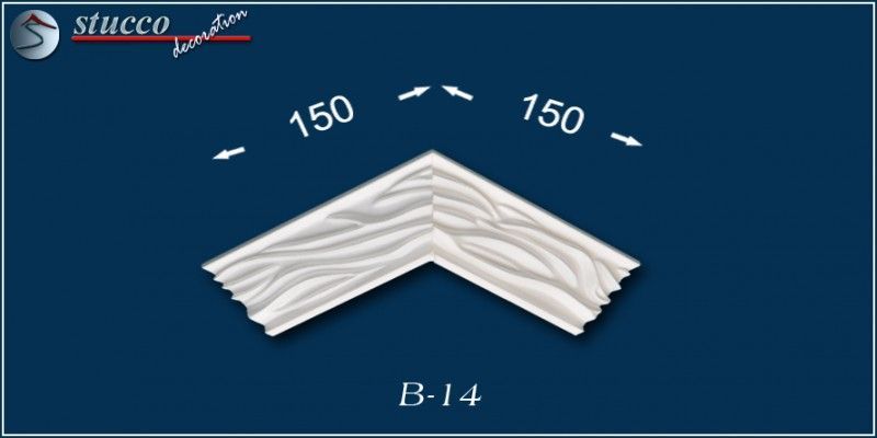 Die Stuckprofile B14 sind zur Verzierung der Schnittlinie zwischen Wand und Decke. Das wellenartige Stuckmotiv ermöglicht Ihnen eine schnelle, einfache und langlebige Raumgestaltung. Die Styroporleiste kann mit Farben auf Wasserbasis gestrichen werden. In Größe und Stuckmuster zum Stuckprofil B14 passende Innenecken und Außenecken erleichtern Ihnen die Stuckarbeiten.