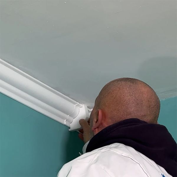 6. Verkleben der Stuckleisten aus Styropor