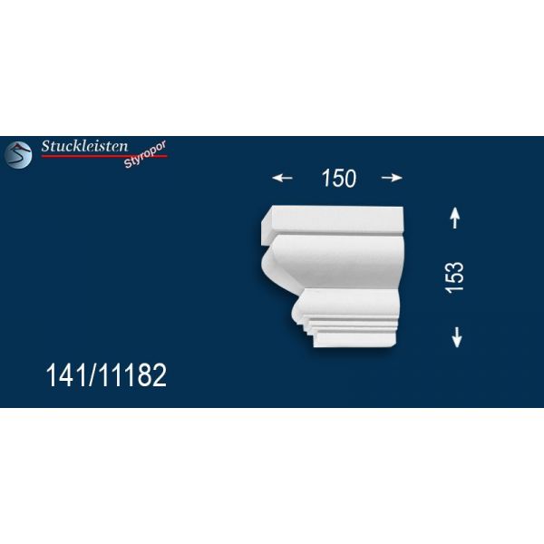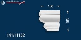 Das Fassadenprofil Bielefeld 141 ist ein modernes Stuckgesims aus Styropor. Das Gesimsprofil verfügt über eine stoßfeste und witterungsbeständige Beschichtung und eignet sich dadurch zur Fassadengestaltung im Außenbereich. Die Ergänzungselemente des Dachgesimsprofils sind in Größe und Stuckmuster auf das stoßfest beschichtete Fassadenprofil abgestimmt. Dank der schlichten Profilierung kann dieses Dachgesims hervorragend mit anderen Fassadenelementen kombiniert und mit Farben auf Wasserbasis gestrichen werden.