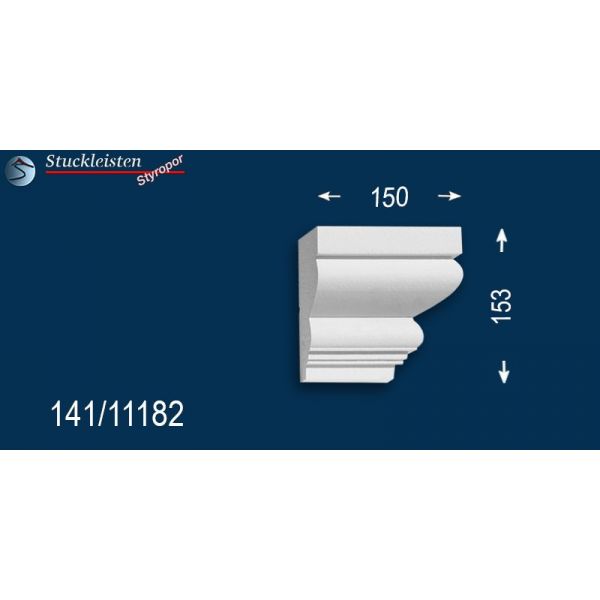 Auf dem Produktbild mit dem blauen Hintergrund finden Sie die Maße der beschichteten Fassadenzierleiste Bielefeld 141. Prüfen Sie bitte vor dem Bestellen, ob genügend Platz zum Anbringen der Stuckelemente zur Verfügung steht. Diese Fassadenstuckleiste lässt sich aufgrund des zeitlosen, schlichten Musters sehr gut mit anderen Fassadenelementen und Stuckmustern kombinieren. Kontrollieren Sie anhand der Maße auch, ob die verschiedenen, ausgewählten Zierleisten in der Stärke/Tiefe zueinander passen.