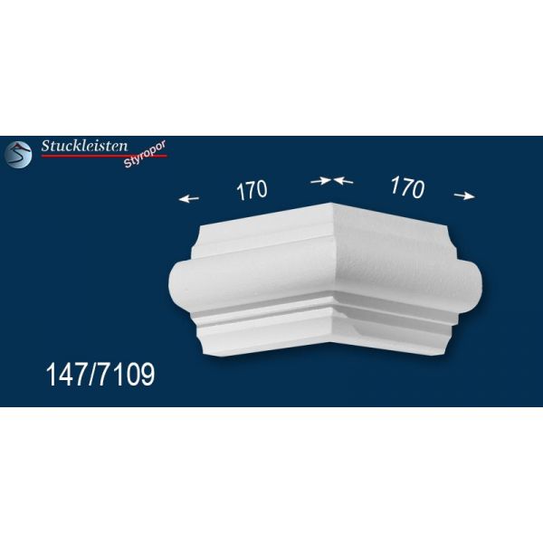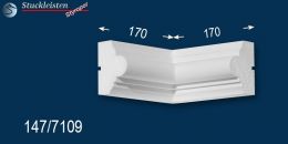 Zu den Ergänzungselementen gehören die verschiedenen Eckelemente. Mit dem äußeren Eckelement lässt sich die Fassadenstuck Zierleiste Lübeck 147 als Umlaufgesims verwenden. Diese 90-Grad-Ecken brauchen Sie nur an den Hausecken anzukleben, dann die entsprechend langen Zierleisten dazwischen zu kleben und schon können Sie Ihren Erfolg bewundern. Wenn Sie die Gesimsprofile um einen Erker, Balkon oder Hausanbau herumführen möchten, brauchen Sie auch das innere Eckelement, das das Stuckmuster von der Hauswand zum Anbau hinführt.