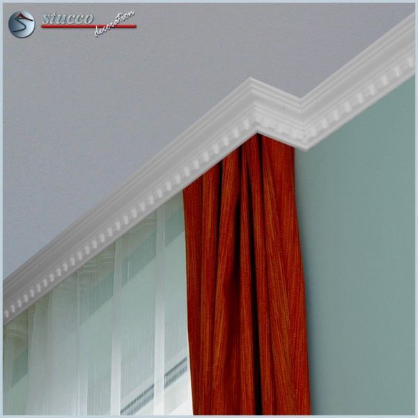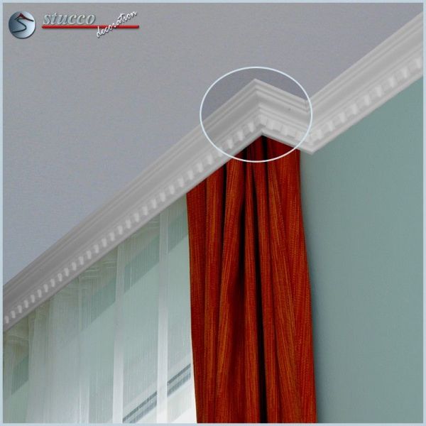 Die Zierleiste Kiev 43-P ist zur Verzierung der Schnittlinie zwischen Wand und Decke. Das p-förmig gearbeitete Stuckmuster ermöglicht Ihnen eine schnelle, einfache und langlebige Raumgestaltung. Die Styroporleiste kann mit Farben auf Wasserbasis gestrichen werden. In Größe und Stuckmuster zur Zierleiste Kiev 43-P passende Innenecken und Außenecken erleichtern Ihnen die Stuckarbeiten. Mit Hilfe der Vorhangleiste können Sie das Stuckprofil auch vor den Gardinenschienen entlangführen.